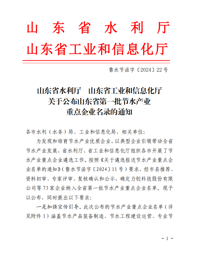 元器件等研發(fā)、生產(chǎn)和銷售,成功入選山東省水利廳、工信廳聯(lián)合確定的“山東省第一批節(jié)水產(chǎn)業(yè)重點(diǎn)企業(yè)名錄”。