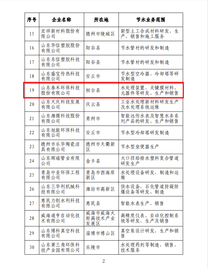 祝賀山東泰禾環(huán)保科技股份有限公司,憑借水處理裝置、關(guān)鍵膜材料、