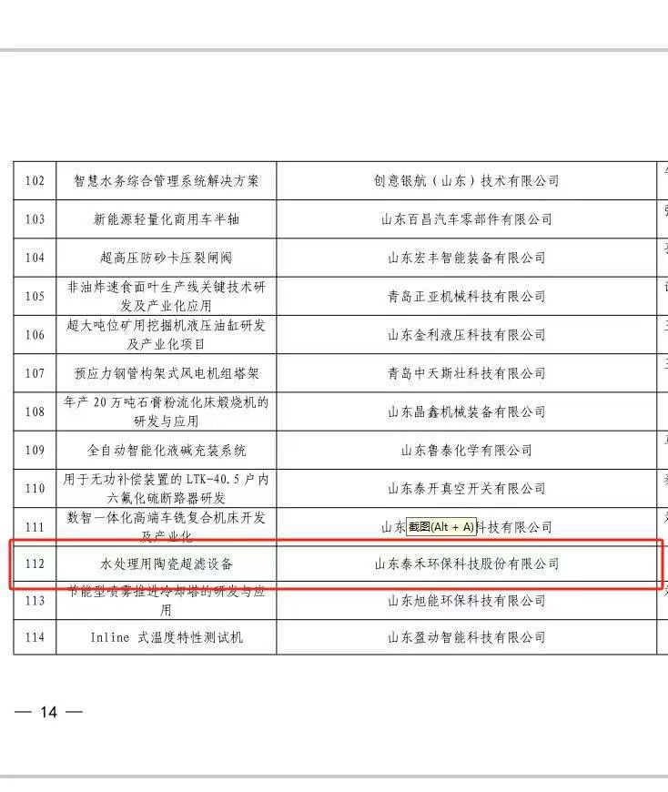 祝賀公司產(chǎn)品“水處理用陶瓷超濾設(shè)備”